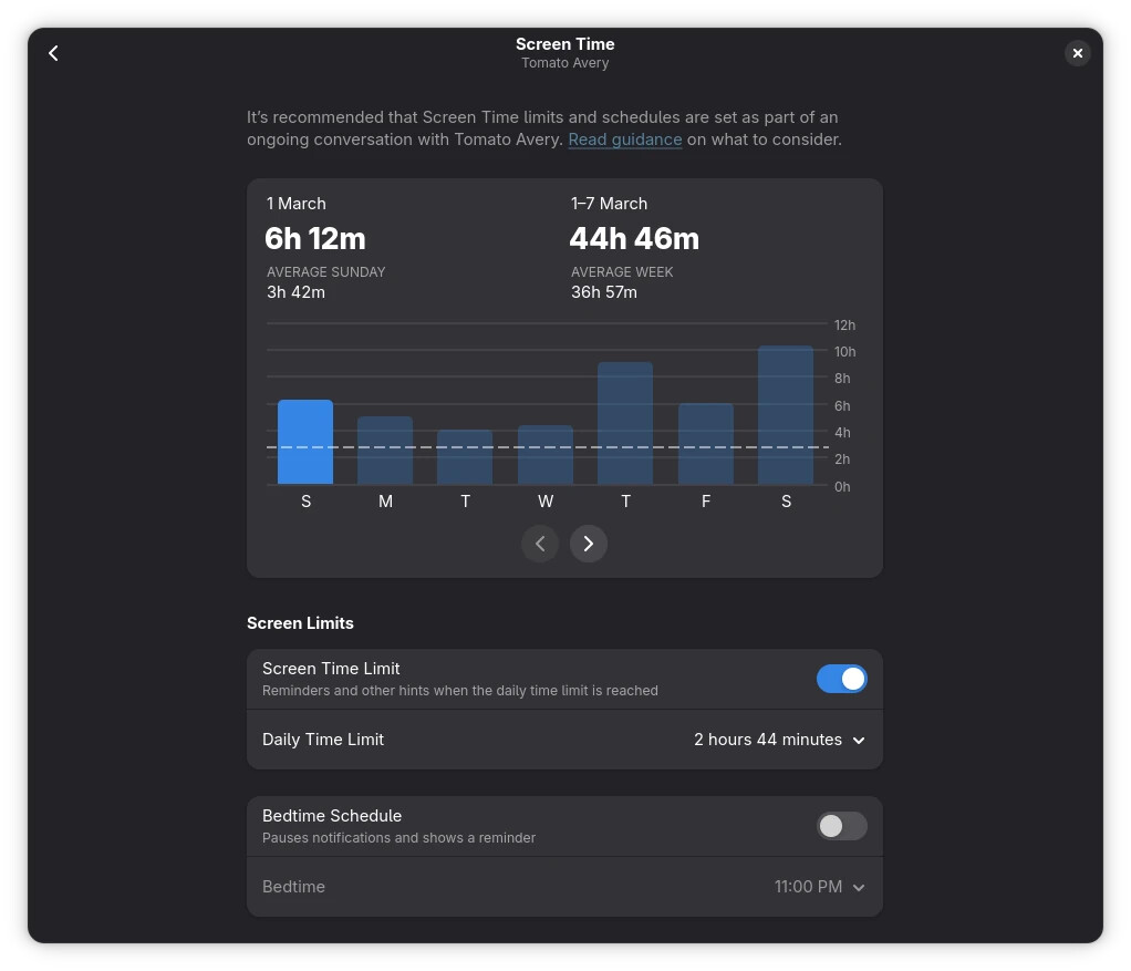 在桌面 UI 方面,GNOME 50 新增了电源配置文件指示器,这一改动对于笔记本用户来说属“锦上添花”的易用性提升。 设置应用则加入了“减少动画”开关以提升无障碍体验,并集成了针对儿童账号的家长控制,包括每日屏幕时间限制、应用访问限制以及可配置的使用时段安排。 针对专业创意工作者,GNOME 50 修复并完善了色彩管理与显示校准功能,使其在色彩敏感场景下更具实用价值。 声音设置界面也有所改进,更清晰地标示输入输出设备及其音量,方便用户快速识别与调整。 远程桌面功能方面,本次更新引入了 GPU 加速,有利于在高性能应用场景下提升远程会话的流畅度和响应性。
