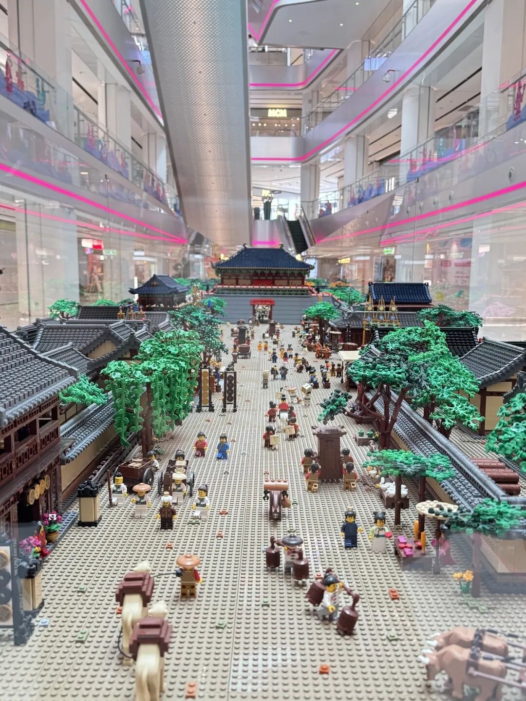 全球最大乐高情景模型装置——26.5米乐高版《清明上河图》正式亮相上海静安区南京西路中信泰富广场。这件创吉尼斯世界纪录的作品由乐高专业认证大师洪子健团队耗时一年打造,使用超百万颗乐高积木,将北宋名画完整立体化,生动还原汴河两岸的市井风貌、城楼、船只与人物细节。