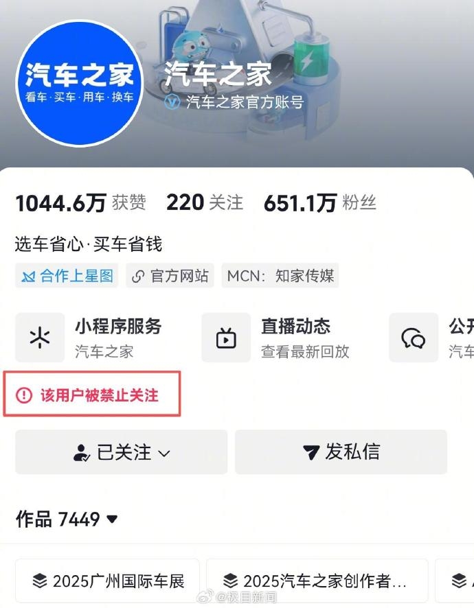 近日,知名汽车垂直平台汽车之家的多个社交平台官方账号出现了异常。不少网友发现,这些账号目前已被系统设置为禁止关注状态,引发了业内的广泛关注与猜测。