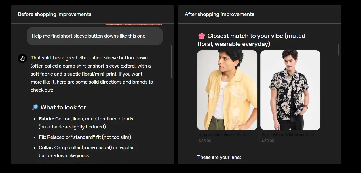 在此更新之前,用户向 ChatGPT 咨询购物建议时,多数只能得到较为抽象的选购指南,例如应关注哪些功能、参数或价格区间,而缺乏具体商品指引。引入新协议后,商家可将自身商品目录接入,ChatGPT 则能在理解用户需求的基础上返回有针对性的实物商品推荐,并支持用户在对话界面中直接完成下单流程。