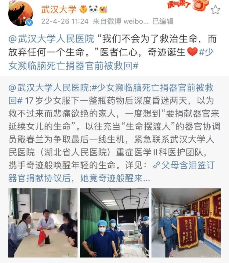 武汉“17岁少女濒临脑死亡,捐器官前被救回”的新闻,当时很轰动。