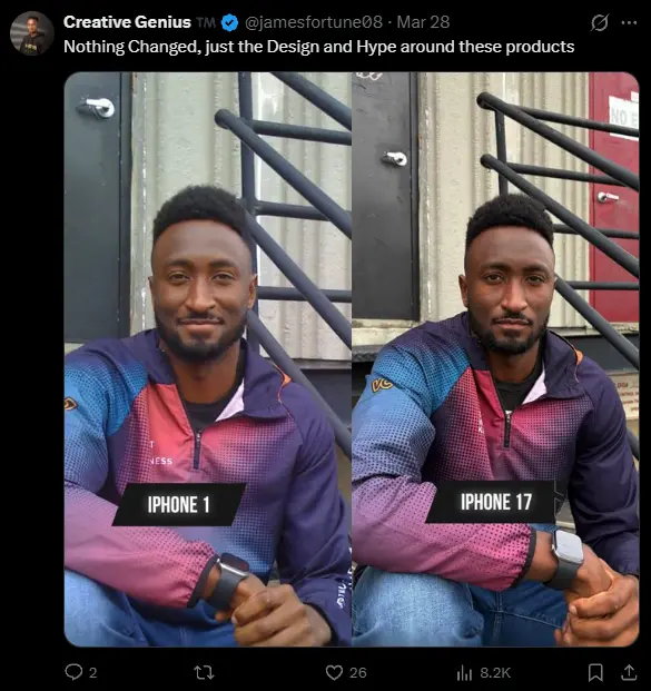 日前,博主Marques Brownlee发布从初代iPhone到最新iPhone 17的自拍对比视频。不少网友吐槽称,从iPhone 4S开始,自拍画质看起来几乎都一样。