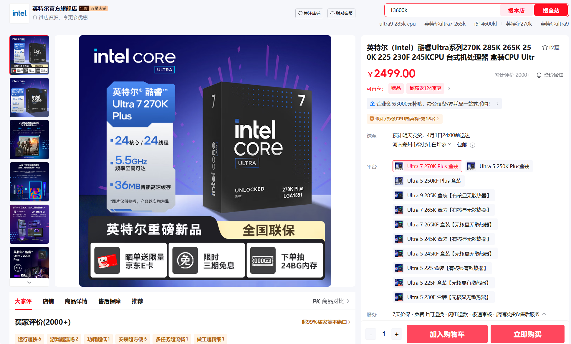 不过经查询,在国内市场这三款处理器依然保持2499、1699、1599元的价格,且是现货状态。