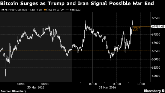 随着美国总统唐纳德·特朗普与伊朗方面均释放出结束中东冲突的意愿,比特币终结了连续五个月的跌势,录得自9月份以来首次单月上涨。比特币周二一度上涨2.9%,至约68500美元。这一规模最大的加密货币3月涨约2%,结束此前累计跌幅约40%的下行趋势。第二大加密货币以太币一度上涨5%,而索拉纳和瑞波币分别上涨约2.2%和1.5%。