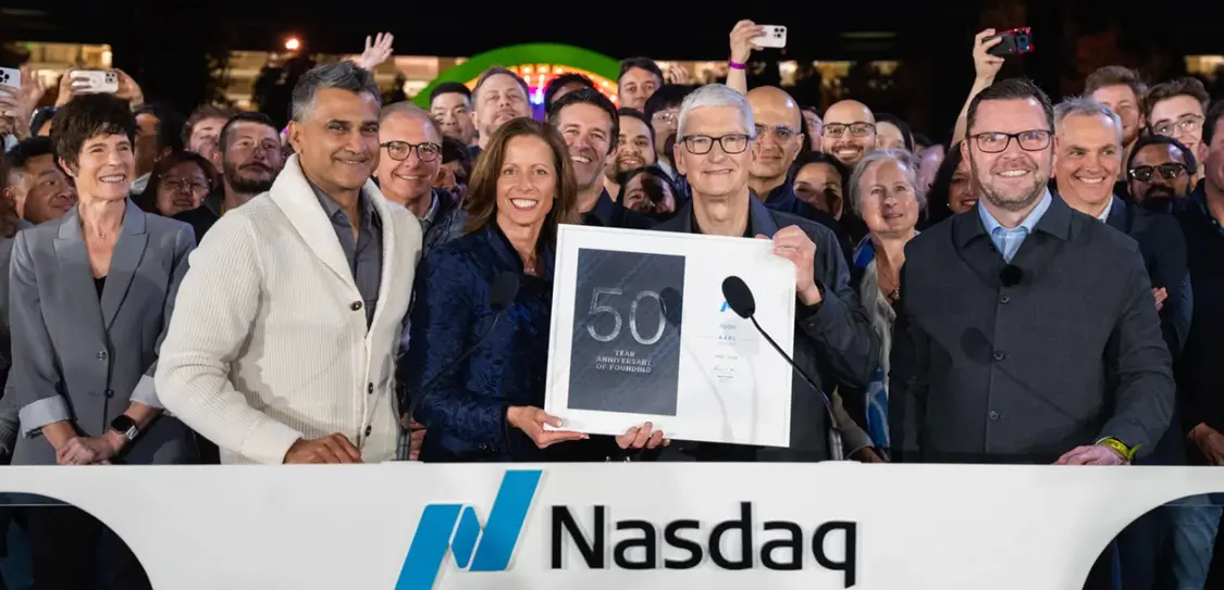 在敲钟仪式开始前的几分钟,纳斯达克区域副总裁迪伦·詹姆斯(Dylan James)发表了简短讲话,分享了自己与苹果共事长达16年的经历。随后,纳斯达克董事长兼CEO阿迪娜·弗里德曼(Adina Friedman)向库克以及苹果的所有领导层和员工表示感谢,感谢他们在过去50年里“不断突破设计、芯片与软件的边界”。