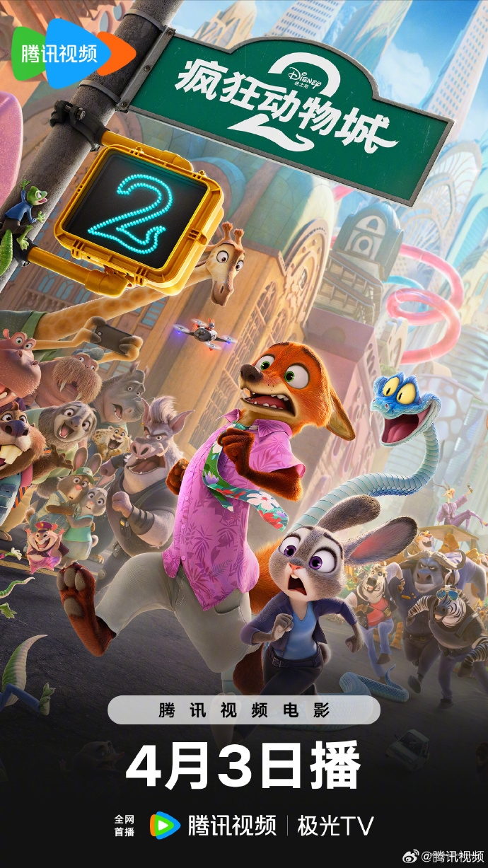 迪士尼爆款动画电影《疯狂动物城2》网播定档:4月3日上线爱优腾