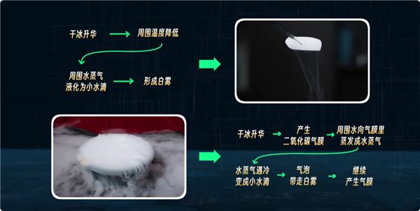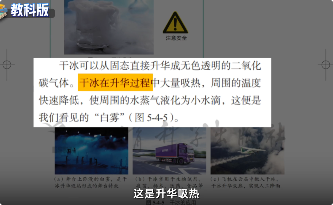 他通过实验和专业的物理知识分析,指出教材中的这一解释存在明显偏差。干冰放入水中产生的大量白烟,其形成原因并非教材中所说的单一吸热液化。