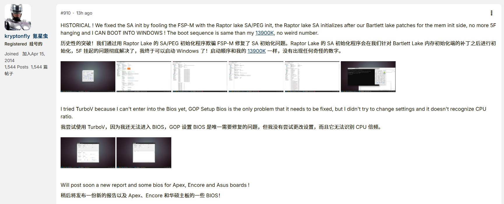 Intel官方限制被玩家硬破:纯大核CPU在Z790上成功进Windows