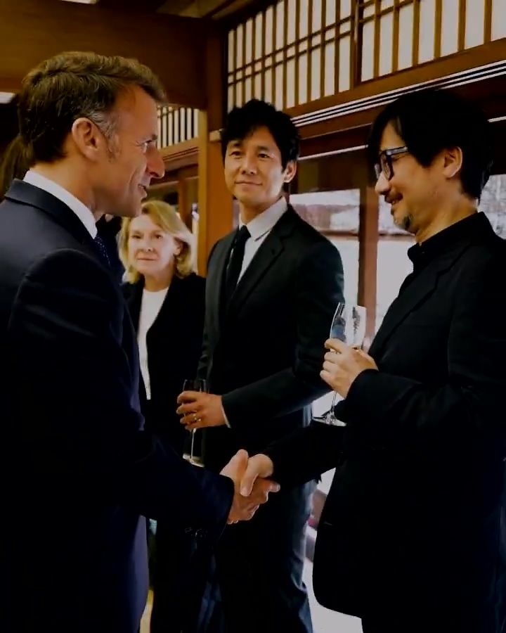 法国总统马克龙与小岛秀夫握手合影 还玩起龟派气功