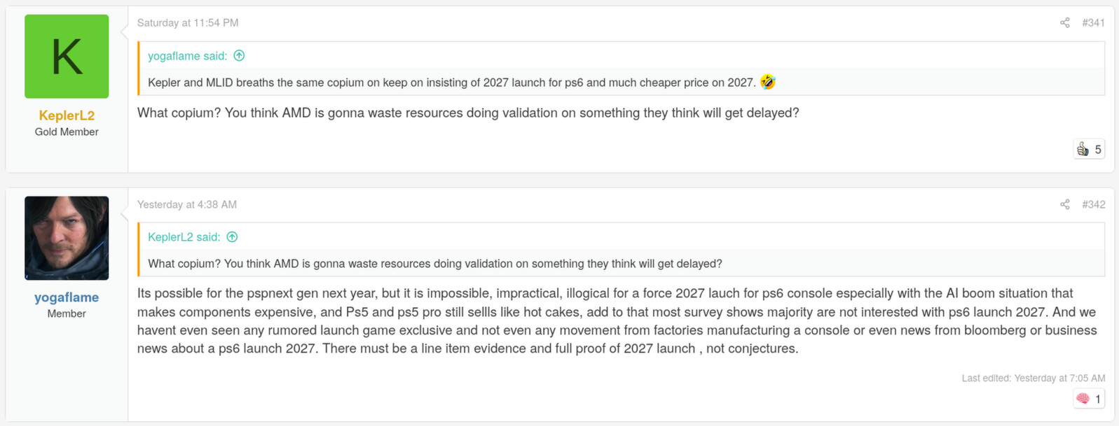 知名爆料者 Kepler_L2 谈及此前有关 PlayStation 6(PS6)可能推迟上市的传闻,至少从芯片合作方 AMD 的角度来看,并不足以动摇现有节奏。 爆料称,如果索尼真有意把 PS6 推到更晚时间点,AMD就不会现在就投入宝贵资源,去为一颗可能“迟到”的半定制 APU 做大规模验证工作。