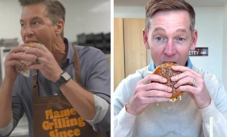 此前,麦当劳全球CEO克里斯・坎普钦斯基为新品Big Arch 大拱门汉堡拍摄试吃视频,不料因表现拘谨引发全网群嘲。视频中,他单手捏汉堡、仅轻咬边缘,全程表情僵硬、眼神飘忽,还反复将汉堡称作“产品”,被网友调侃“吃相像上刑”、“汉堡仅受皮外伤”。事件发酵后,老对手汉堡王迅速借势。