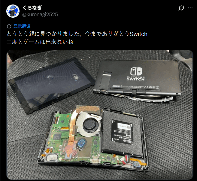 近日,一名日本初三男生因“偷偷藏起来的Switch被父母发现并直接砸毁”一事,在社交平台引发热议,不少网友直指其父母为“毒亲”(对子女造成身心伤害的父母)。这名学生在4月6日还曾发帖表示“升入初三第一天,要去上学了”。但仅过一天(4月7日),他便更新称:“终于被父母发现了,谢谢你一直以来的陪伴,Switch……以后再也玩不了游戏了。”
