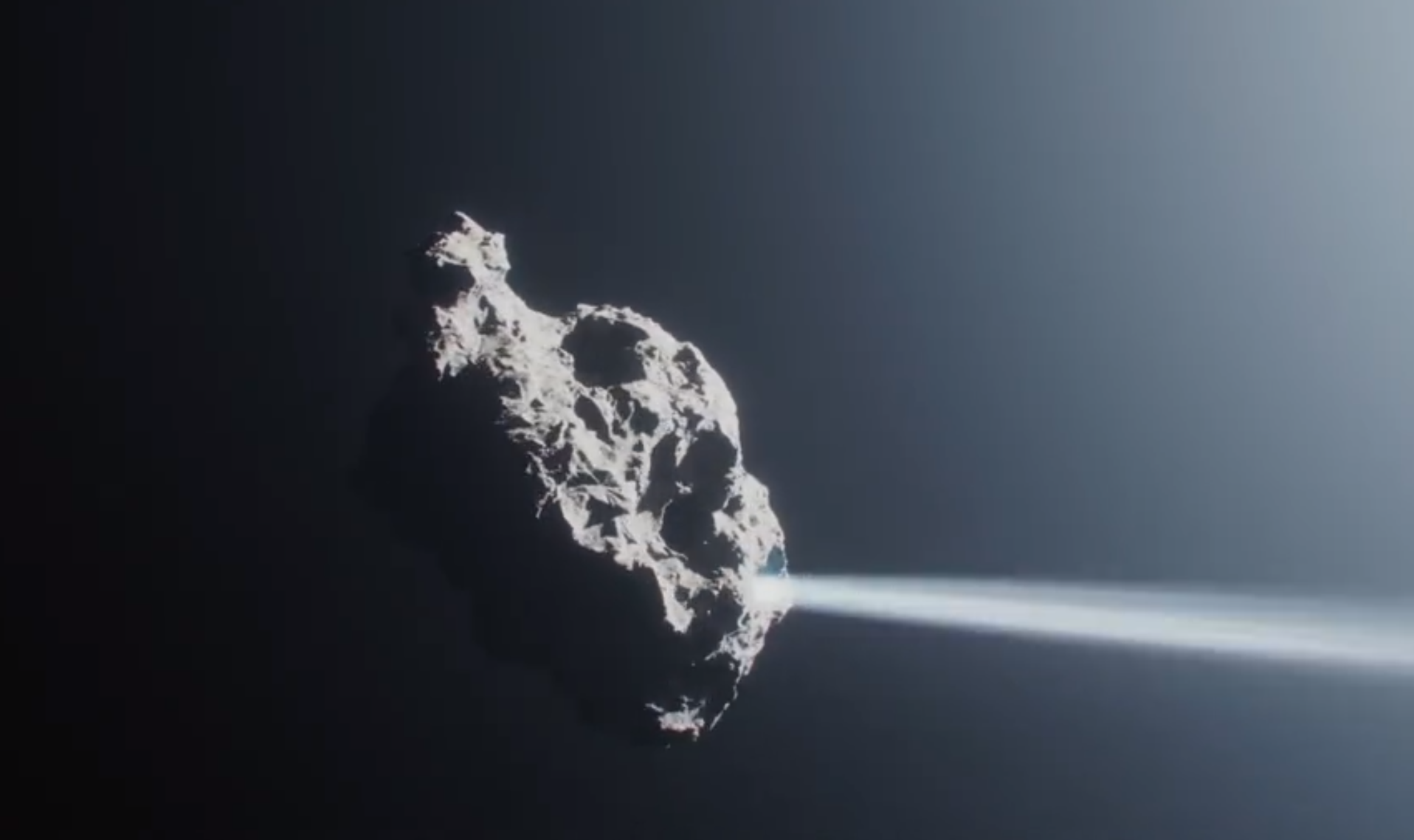 而彗星“放屁”巨大的推力像个喷气发动机一样,首先减缓了一个方向的自转,然后又反向加速旋转。