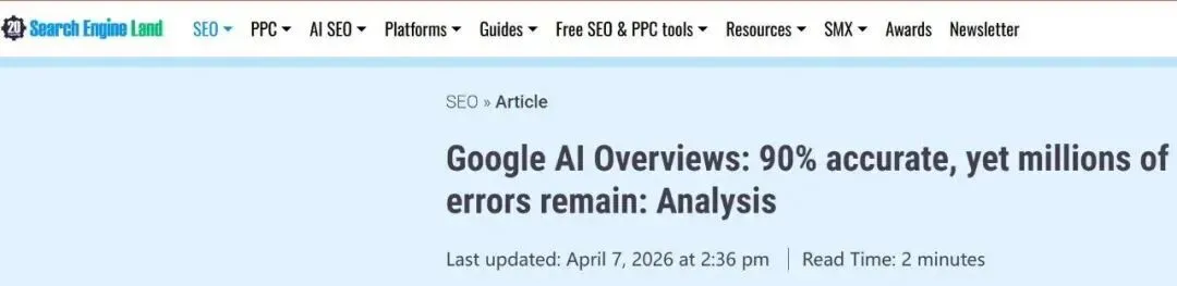 《纽约时报》委托AI初创公司Oumi进行的最新研究给Google AI Overview打了个分:91%的事实准确率。测试覆盖4,326个搜索查询,使用业界标准的SimpleQA基准。相比去年10月Gemini 2的85%,今年2月升级的Gemini 3确实"进步"了。