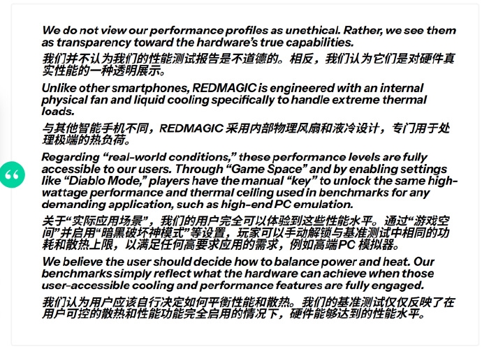 这场争议背后,实际上是硬件极限论与标准测试规范之间的碰撞。厂商认为只要散热跟得上,让用户自主选择性能爆发无可厚非;而测评平台则坚持认为,测试应基于常规且可持续的设备状态。