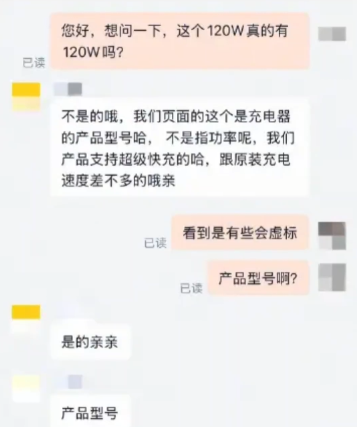 商家面对质疑辩称,“120W是商标/型号,不代表实际功率”。
