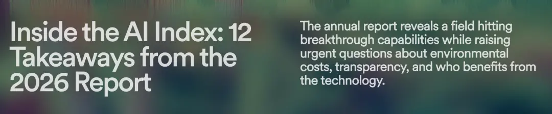 下面直接上干货,“2026年AI指数报告”最值得关注的12个硬核趋势。