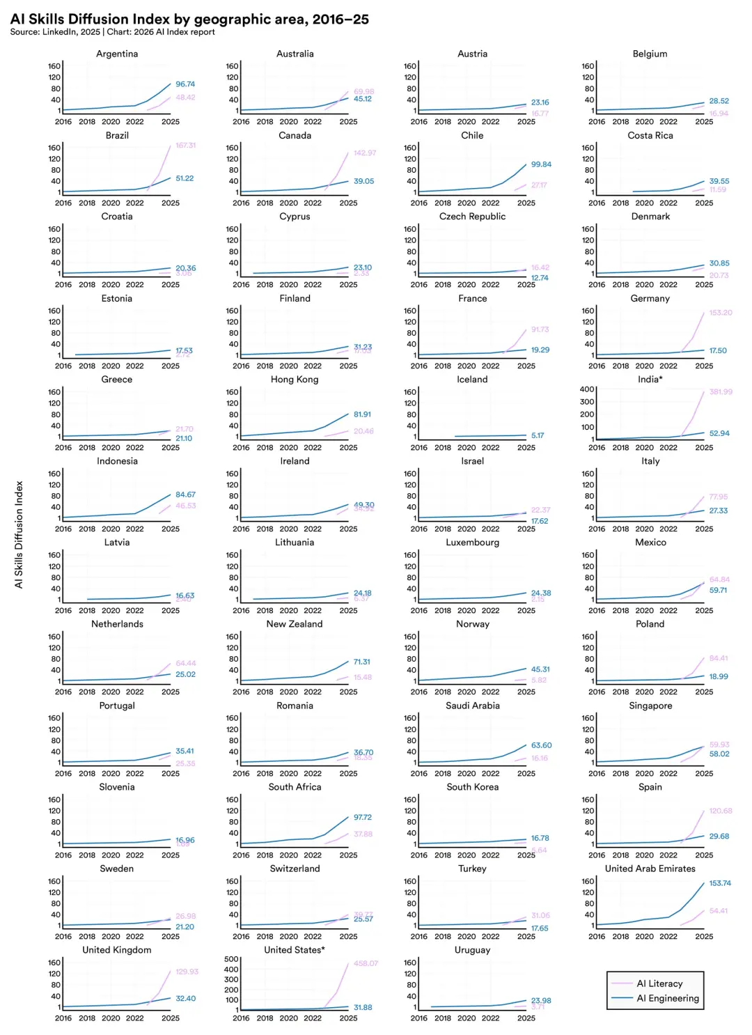 正规教育跟不上的同时,自学浪潮在全球开炸。里面写,学AI工程技能增长最快的三个国家分别是阿联酋、智利和南非。