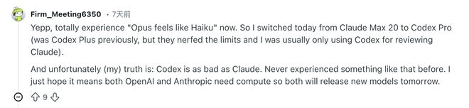 价格没变智力降级:这就是典型的缩水通胀。Reddit用户Firm_Meeting6350说,我今天退订了Claude Max 20并转投了Codex Pro,Claude现在给我的感觉就像在用过时的旧模型。