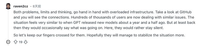这两大问题也就是额度限制和思考能力下降都与基础设施过载密切相关,去GitHub上看看就知道了,成千上万的用户现在都在面临类似的问题,这情况感觉就像一年半前GPT发布新模型时一样。