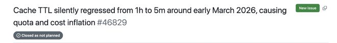GitHub上一份编号为46829的反馈指出,Claude Code的提示词缓存生存时间从原本的1小时被缩短到了5分钟。