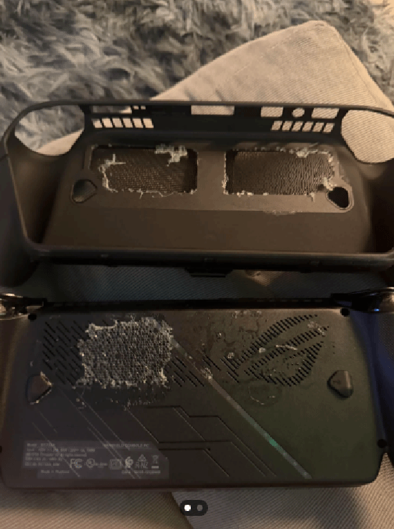 有玩家在社区分享了自己的掌机意外遭遇,他的ROG Ally X被家中3岁女儿弄上了大量果冻。好在机器当时装有保护壳,果冻只进入了机身背部的通风口。
