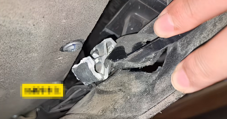 据博主“汽车人一零”近期爆料,有杭州一电动车车主驾驶刚提一个月的新车 ,在停车场碾压一块地砖时,翘起的地砖磕碰到车辆底盘,导致电池包外壳上一个与轮眉连接的塑料卡扣断裂。
