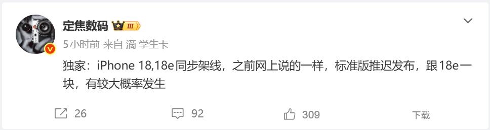 而到了明年3月,苹果则会接力发布iPhone 18标准版、定位更亲民的iPhone 18e以及全新的轻薄系列iPhone Air 2。这种分阶段发布的策略,彻底打破了以往新品集中在秋季开售的传统。