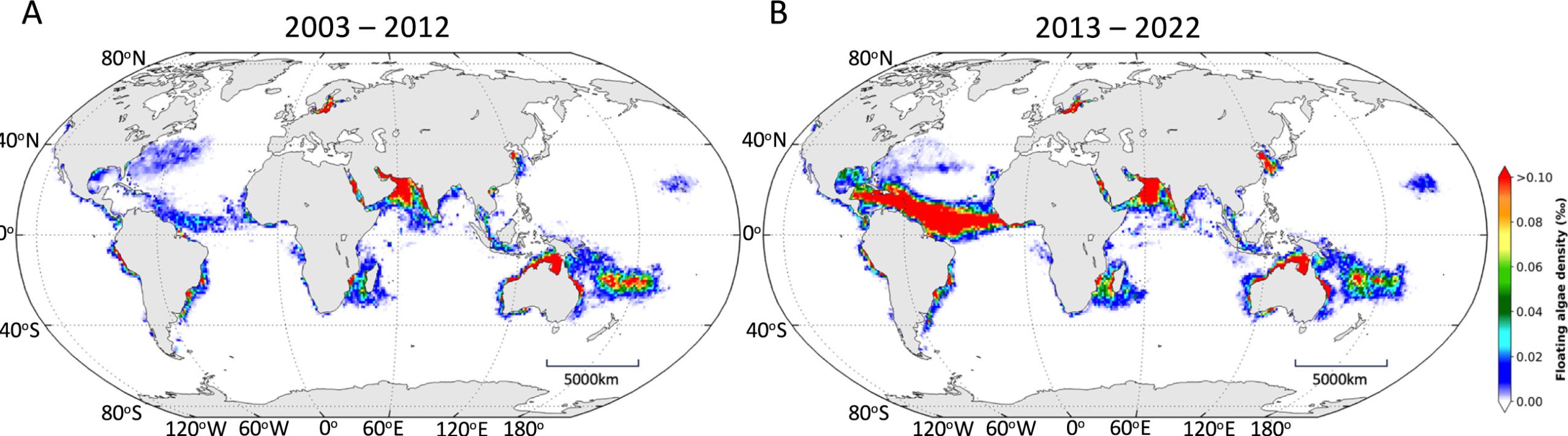 AI遥测研究显示全球海洋“漂浮藻类”爆发式扩张趋势