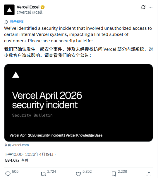 云开发平台Vercel遭到黑客攻击 部分客户的敏感信息可能已经泄露