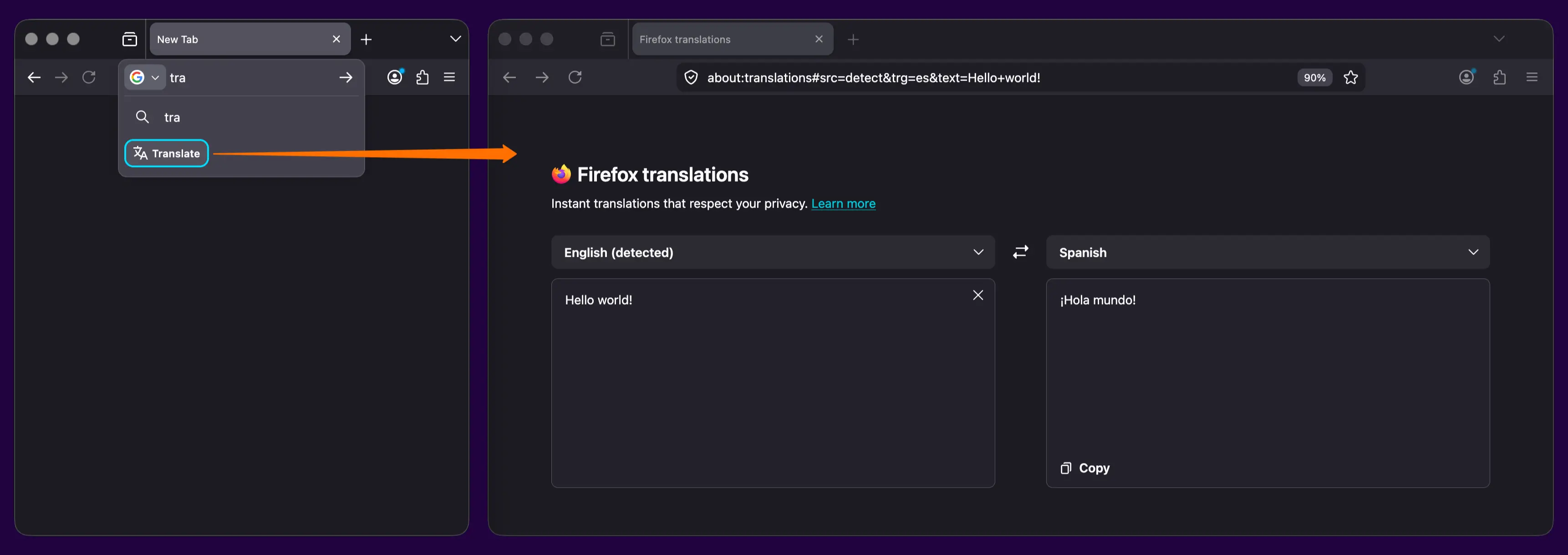 翻译功能方面,Mozilla 继续推进本地、实时、隐私友好的翻译方案。用户可在地址栏输入“translate”,快速调出 about:translations 页面,体验无需将内容上传云端的实时翻译能力。新版中相应界面与功能也得到更新,以提升使用便捷性。