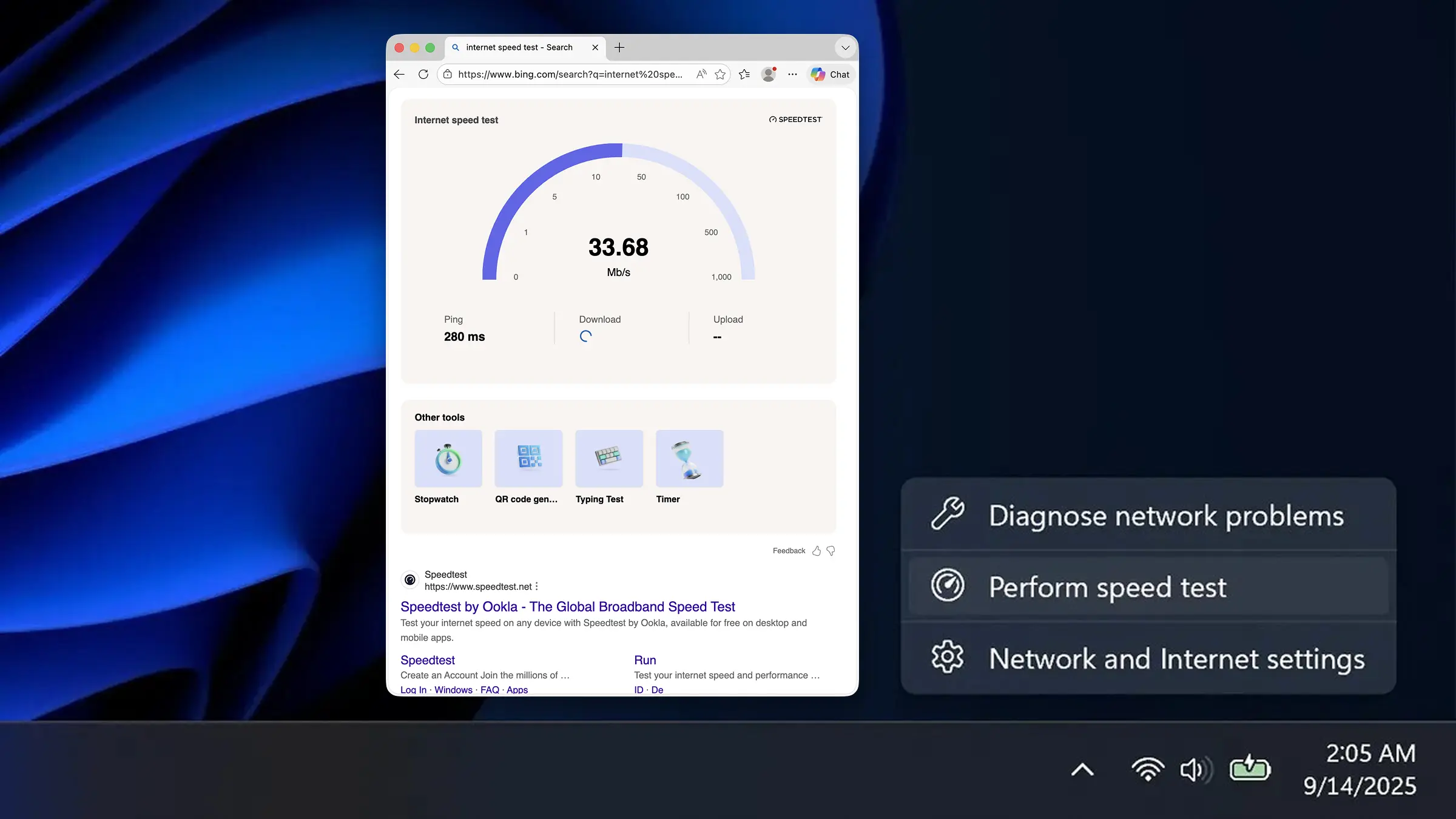 按照双方公布的信息,Ookla 与微软达成合作,将 Speedtest 服务直接集成进 Windows 11,使用户可以不依赖浏览器或第三方应用,在系统界面中直接运行网络诊断。用户可以通过右键单击任务栏中的网络图标,或在 Wi‑Fi、蜂窝网络等快速设置界面中找到相关入口,启动后即可检测下载速度、上传速度、延迟以及网络抖动等指标。从体验上看,这一入口在调用时仍会在 Bing 上打开一个基于网页的测速实例,本质上相当于调用了 Speedtest 的 Web 版本。不过,相比以往需要手动打开浏览器并输入“speed test”等关键词的做法,系统级集成减少了操作步骤,使网络诊断更加直接和便捷。