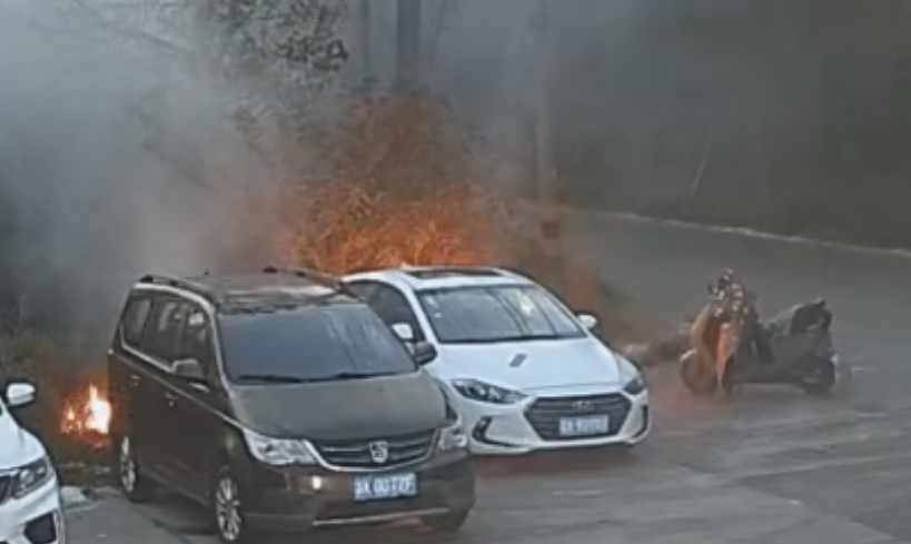 近日,江苏扬州高邮一名男子骑电动车途经路边时,出于好奇用打火机点燃了路边堆积的杨柳絮。杨柳絮燃点极低,明火接触后火势迅速扩散,约1分钟便完全失控,快速蔓延至路边停放的一辆白色小轿车,导致车辆被引燃。