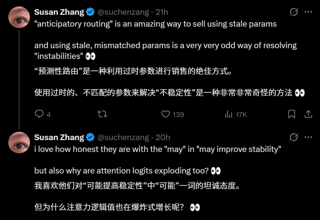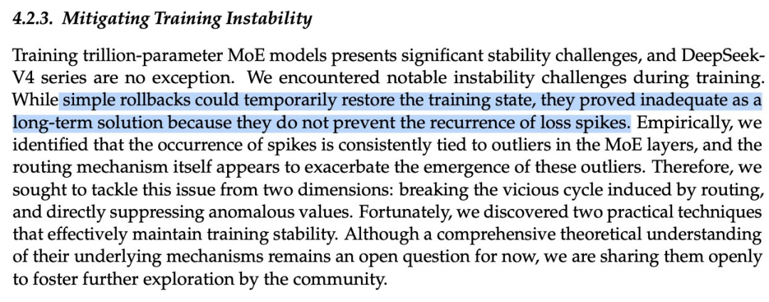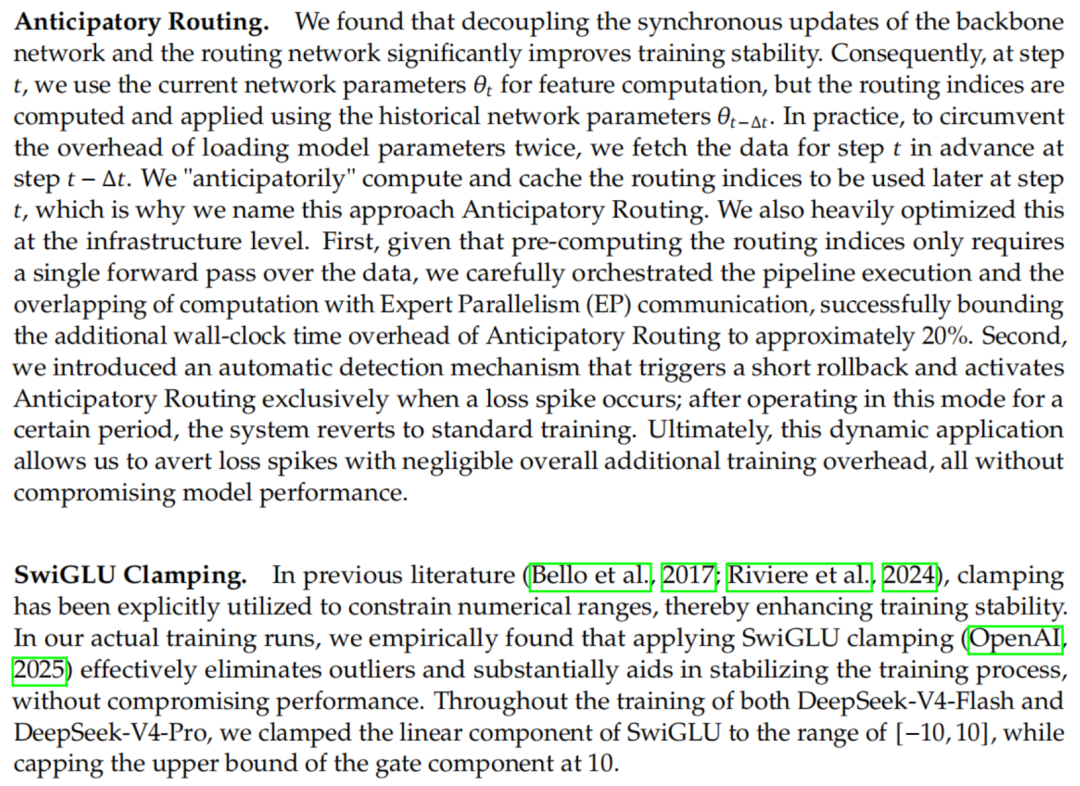 Anticipatory Routing和SwiGLU Clamping,DeepSeek确认“显著有效”,但紧跟一句“底层机理仍是open question”。