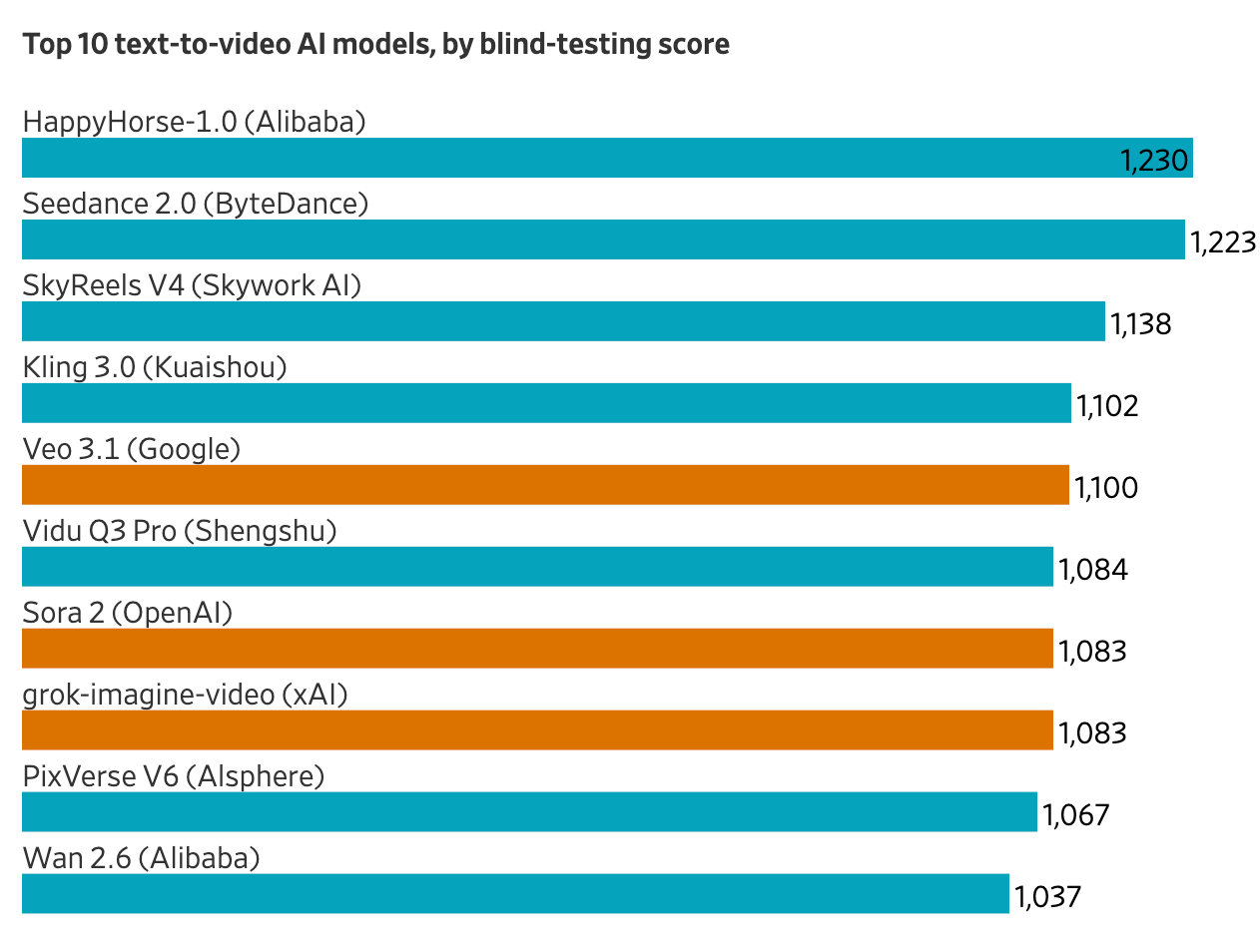 尽管大多数美国人在看电视或刷手机视频时未必察觉,但中国在这一领域正扮演着重要角色。在评测平台Artificial Analysis的视频生成模型排行榜前十名中,中国公司占据了七席,这些模型与谷歌及埃隆·马斯克(Elon Musk)的xAI等对手竞争。