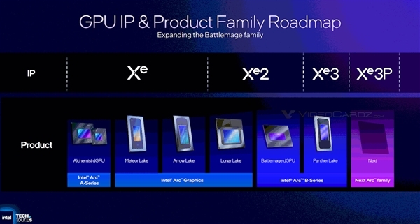 英特尔四代显卡路线图——Alchemist、Battlemage、Celestial、Druid——在第二代就暂时画上句号。下一代Xe4架构Druid是否推出消费级游戏卡也悬而未决。