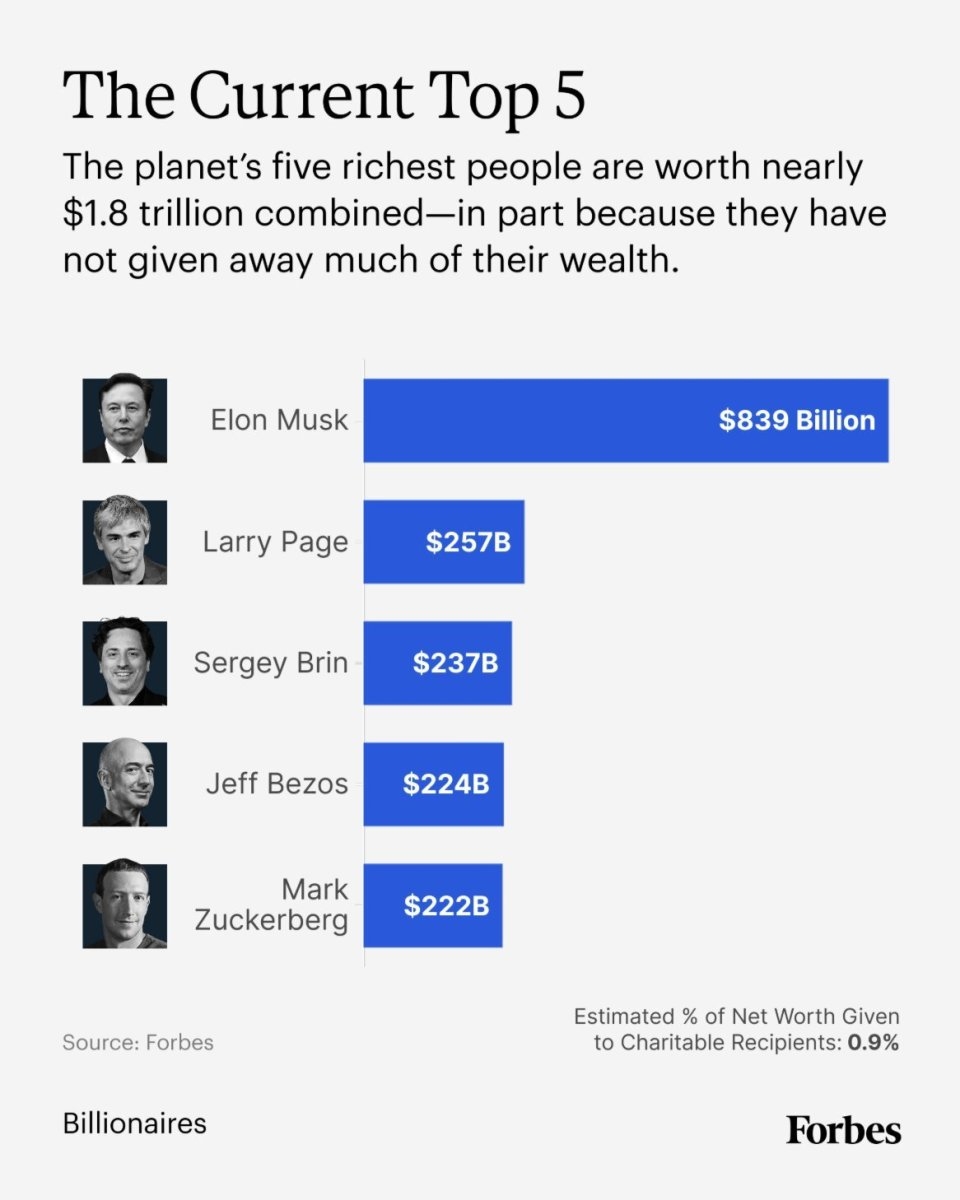 马斯克登顶福布斯最不慈善榜单 其身家高达8390亿美元
