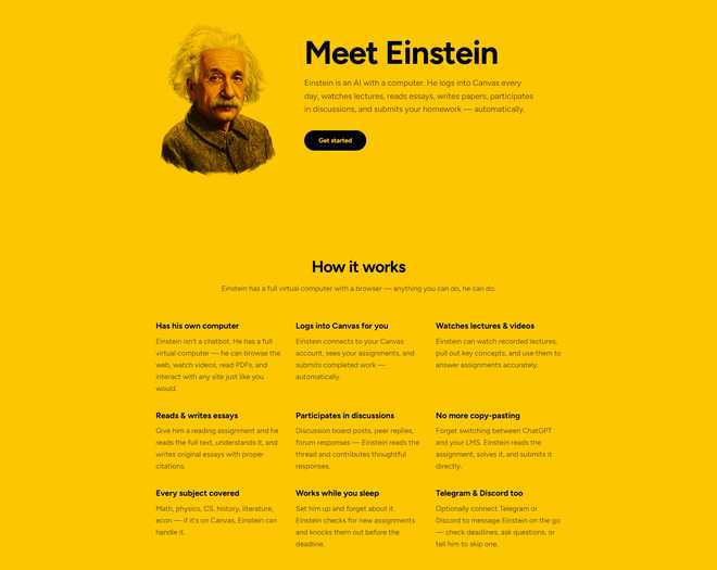 这不仅仅是一个聊天机器人。只要你输入校园网的账号密码,Einstein就能登录美国高校主流教学管理平台Canvas,自动下载课件、理解作业要求,甚至代替你去参加在线讲座、写论文、交作业。